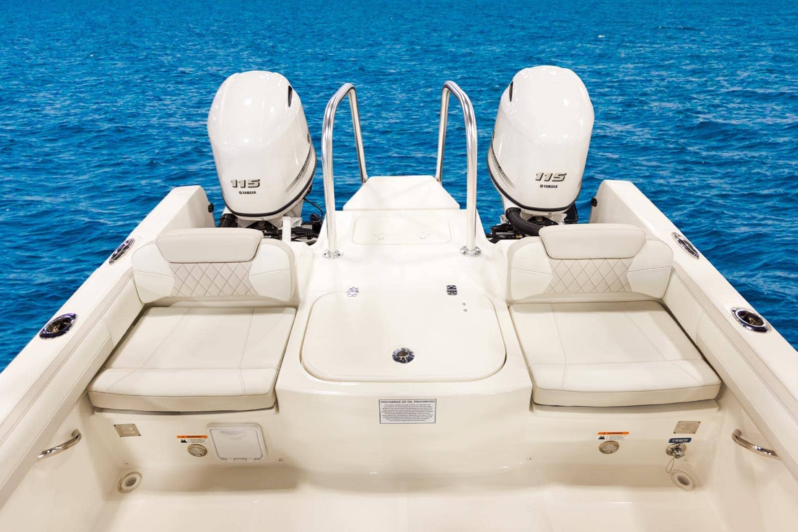 With versatility at its best, the 230DC innovative aft layout provides a large 30-gallon insulated livewell between cushioned aft seats and underseat storage along with easy boarding access dive ladder.